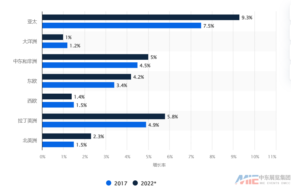 圖源Statista:2017-2022年中東地區(qū)寵物護(hù)理市場(chǎng)以5%增長率位列全球第三