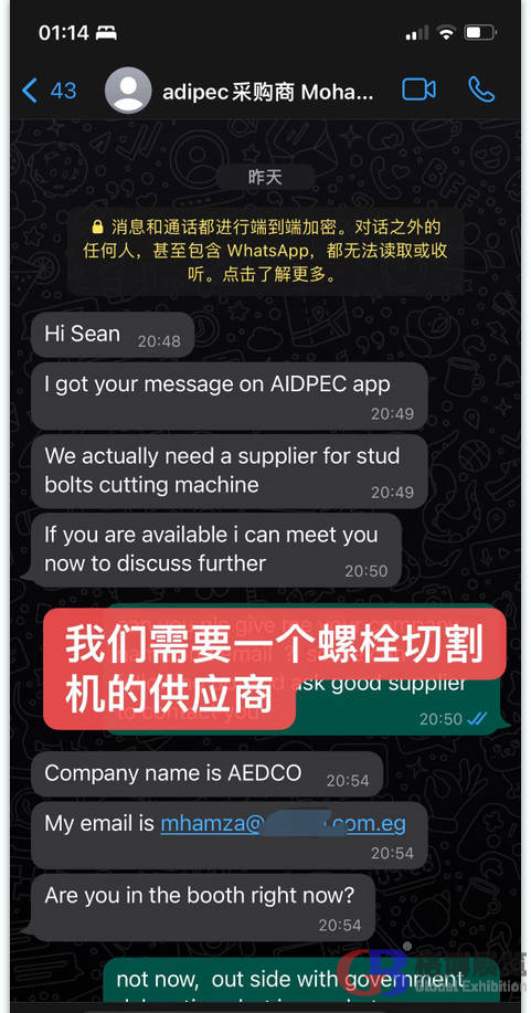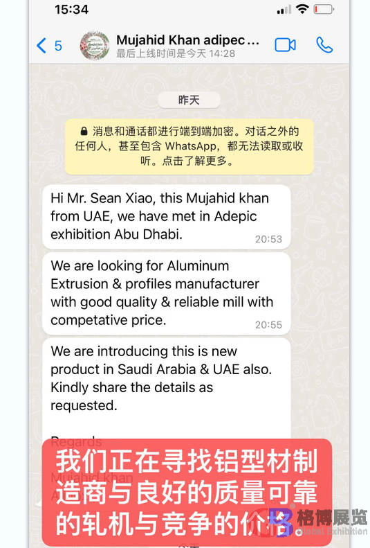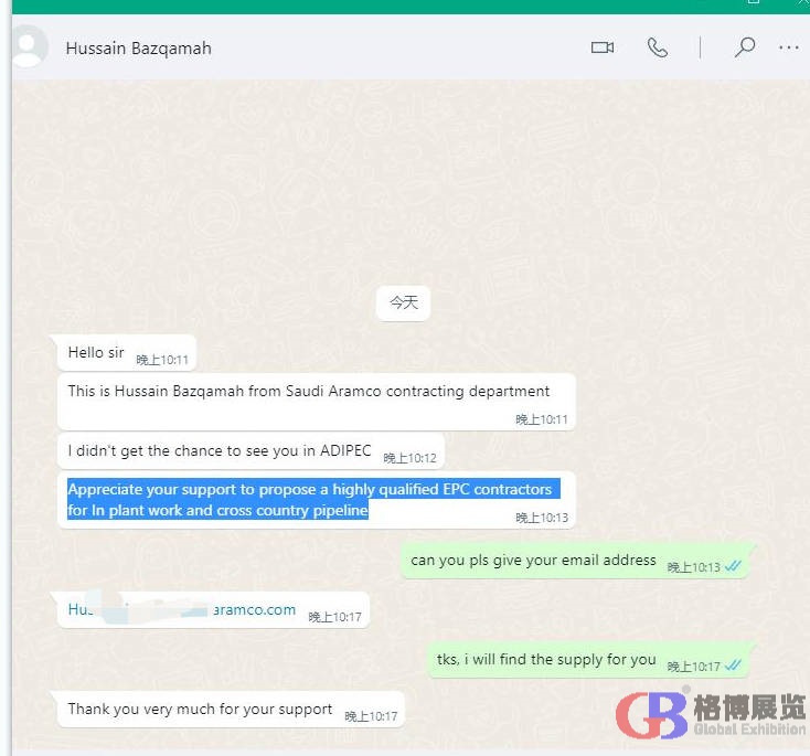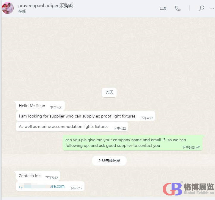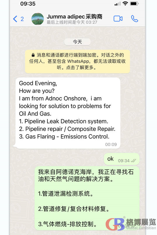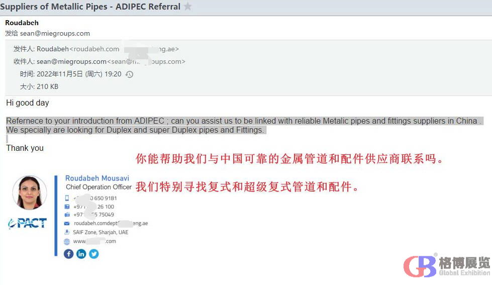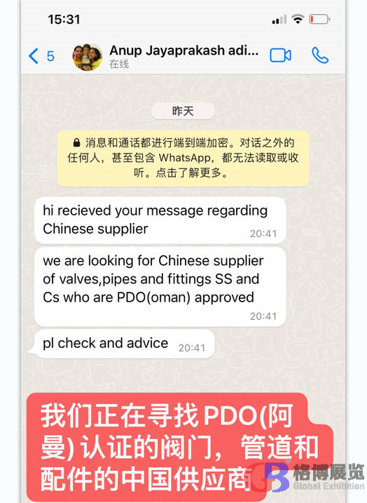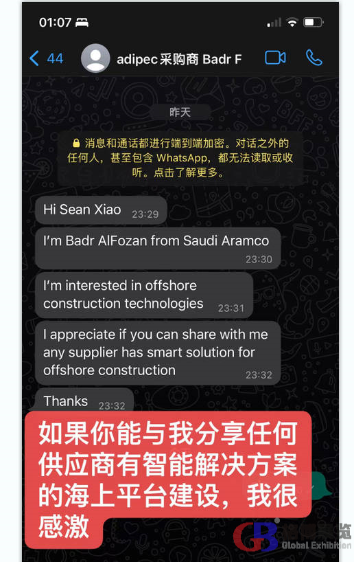 中東國際展覽集團聯(lián)系15年獨家代理阿布扎比石油展,今年一共組織了55家中國企業(yè)線下參加,另外有40多家企業(yè)通過線上(代參展)方式對接現(xiàn)場采購商。 通過自主研發(fā)的"展貿(mào)通Meetby"代參展平臺,一共收集到來自全球20多個國家的采購需求近2000條。現(xiàn)分享出部分采購需求,請相關(guān)企業(yè)聯(lián)系我們的業(yè)務(wù)人員和采購商對接。