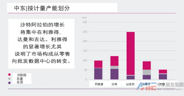 目前沙特在中東地區(qū)的市場(chǎng)份額僅次于阿聯(lián)酋,位居第二,但它是中東地區(qū)增長(zhǎng)最快的數(shù)據(jù)中心市場(chǎng)??紤]到分階段(計(jì)劃中)和在建項(xiàng)目,沙特阿拉伯將成為該地區(qū)的領(lǐng)導(dǎo)者,總?cè)萘繉⑦_(dá)到529MW。具體來說,沙特阿拉伯目前占中東分階段建設(shè)項(xiàng)目的68%。由于目前的在用容量為67MW,隨著新項(xiàng)目的實(shí)施,這將在未來幾年內(nèi)轉(zhuǎn)化為近700%的容量增長(zhǎng)。