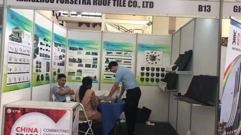 杭州福盛昌屋面瓦業(yè)有限公司是一家專業(yè)致力于彩石金屬瓦、瀝青瓦產(chǎn)品研發(fā)、生產(chǎn)、銷售、服務(wù)于一體的企業(yè)。該企業(yè)目前在尼日尼亞已經(jīng)有客戶,本次參加加納展,主要看中加納的市場(chǎng)環(huán)境以及市場(chǎng)對(duì)非洲的輻射度。開幕式當(dāng)日,不少采購(gòu)商對(duì)其產(chǎn)品感興趣。據(jù)企業(yè)介紹,接下來(lái)還將參加明年的埃塞俄比亞中國(guó)貿(mào)易周。