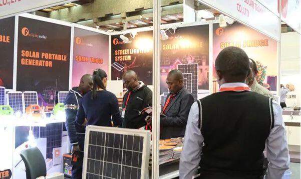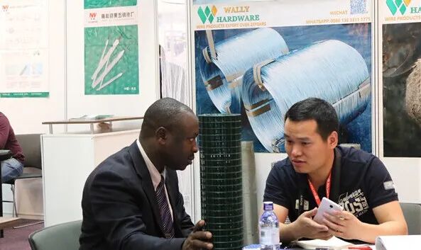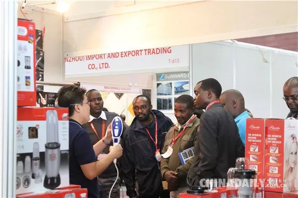 中國參展商在與肯尼亞當(dāng)?shù)乜蛻艚涣鳌?/p>