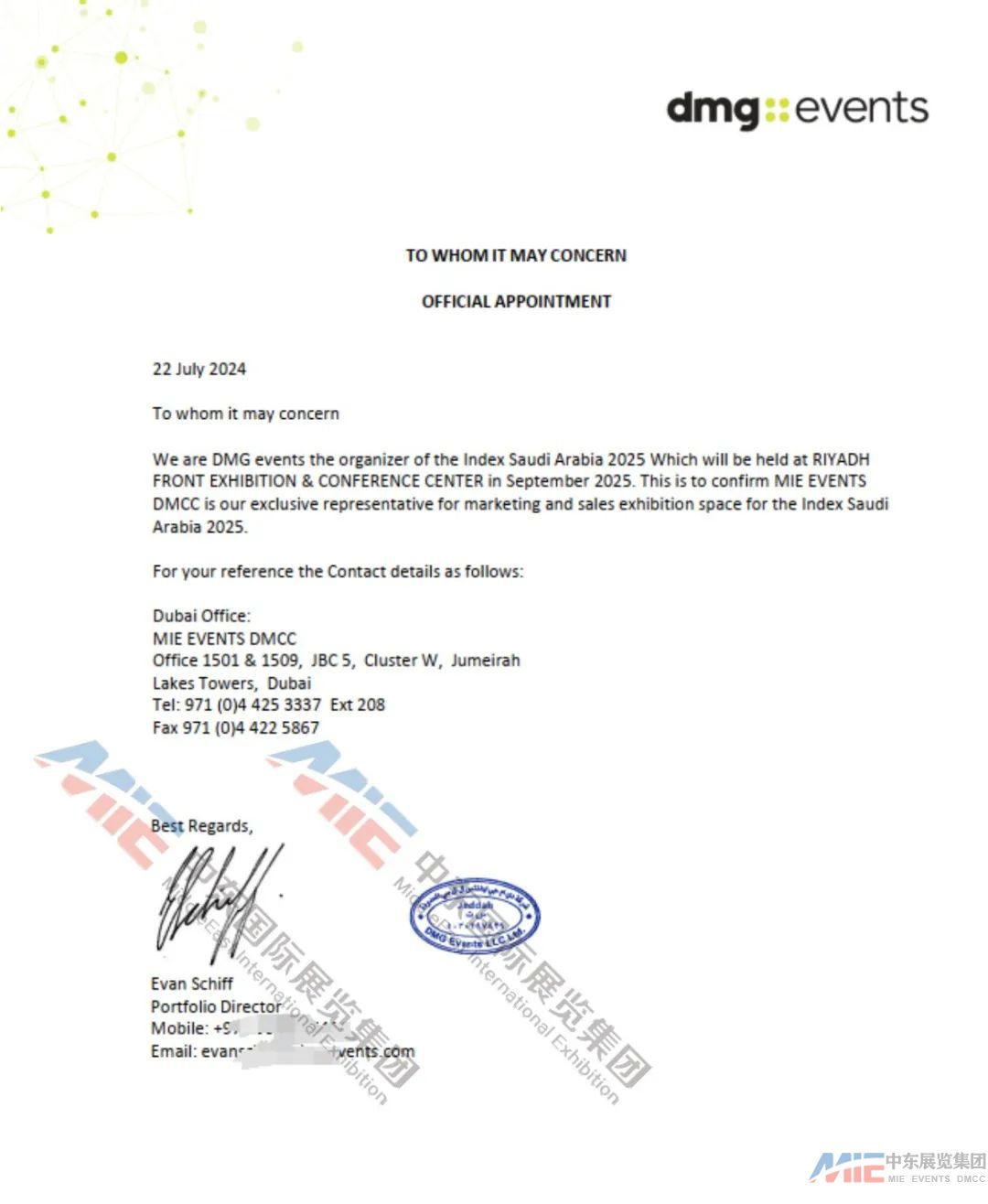 1.中東國際展覽集團MIE是組委會官方認證的2025年沙特酒店展(Hotel Saudi,4月08-10日,利雅得國際會展中心),以及2025年沙特室內(nèi)裝飾及家具展(Index Saudi,9月09-11日,利雅得前沿展覽中心)中國區(qū)獨家總代理。