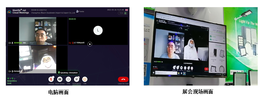 展會現(xiàn)場采購商與展商在MeetBy平臺視頻洽談
